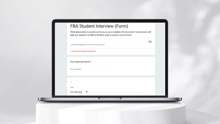 - (4) PDF files containing the links to the FBA Student Interview (Google Forms), FBA Student Interview (Google Docs), FBA Parent Interview (Google Forms), and the FBA Teacher Interview (Google Forms).